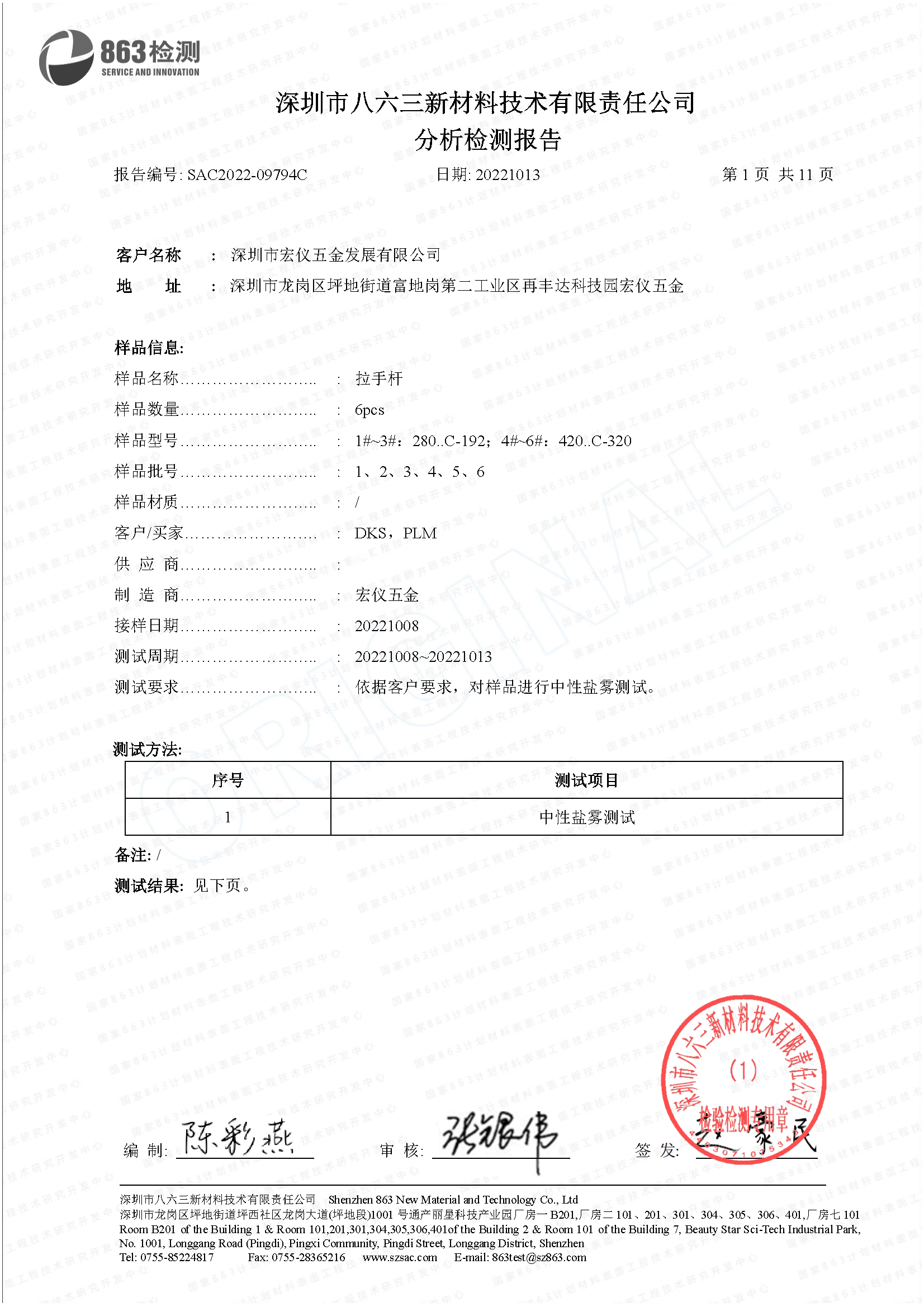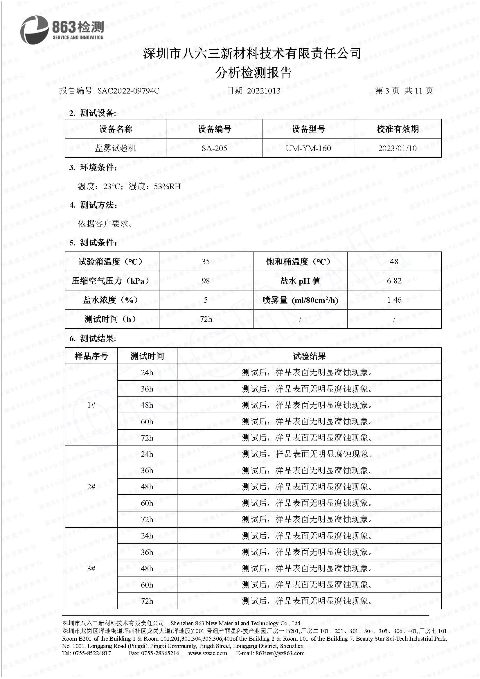 Salt spray test report
